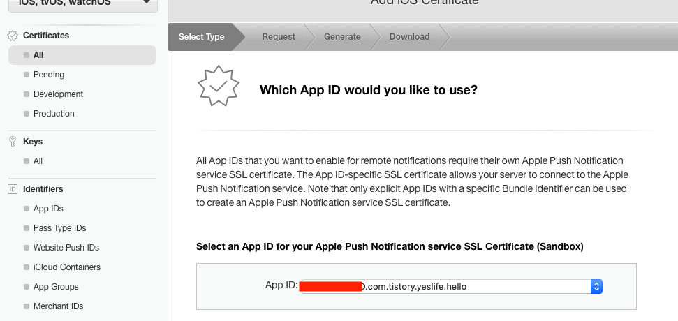 이 작업은 하지 않아도 앱을 생성하거나 하는데 문제는 없습니다. 하지만, Push Notification은 거의 모든 앱에 사용되는 기능이 므로, 꼭 만들어 두기 바랍니다.