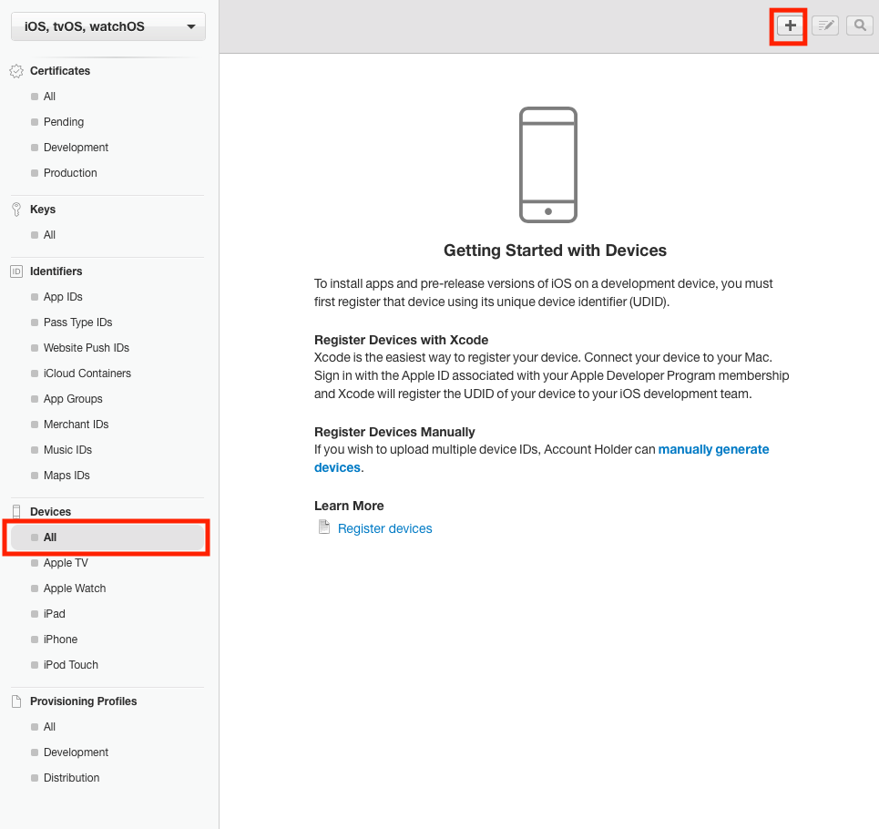 아래와 같이 Devices > All을 선택하고, 나타난 화면 오른쪽 상단의 +. 버튼을 눌러 줍니다.