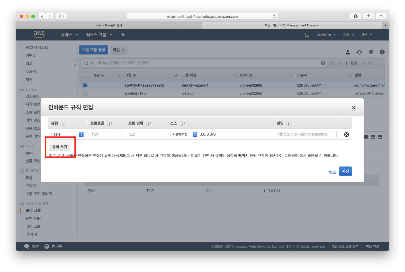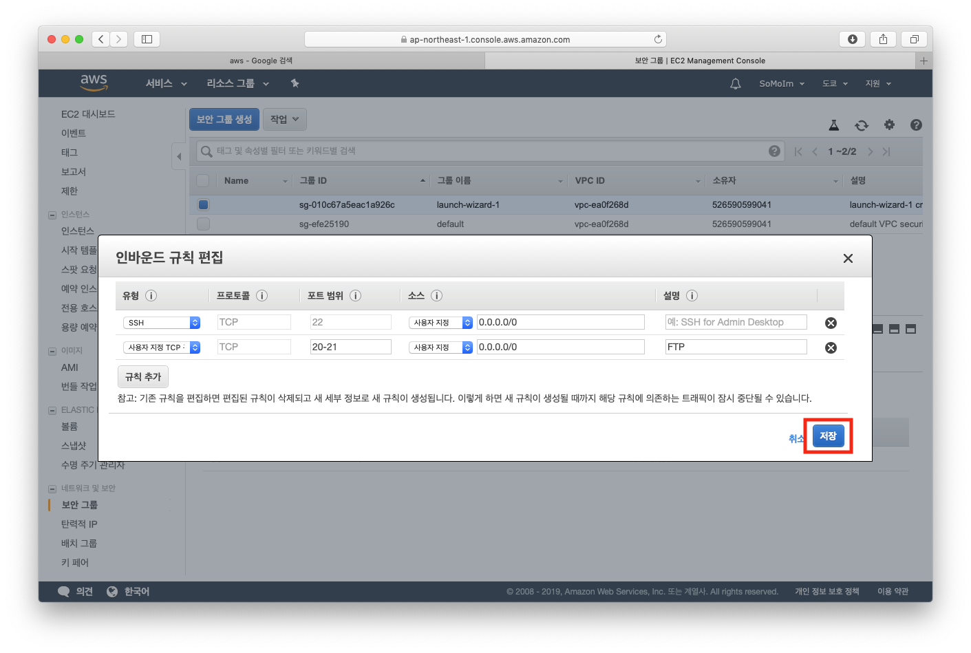 2. AWS 보안 그룹 업데이트.