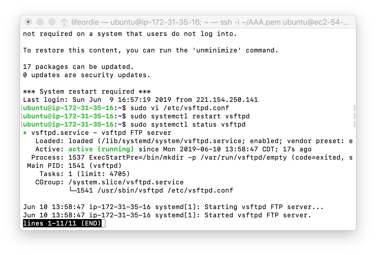 $ sudo systemctl restart vsftp