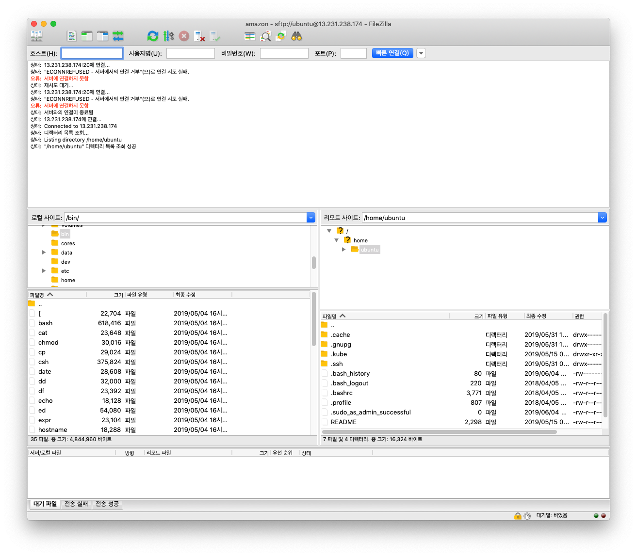 - 그리고 나서 파일 질라를 통해 접속해 보면 접속이 매우 잘 됨을 확인할 수 있습니다.