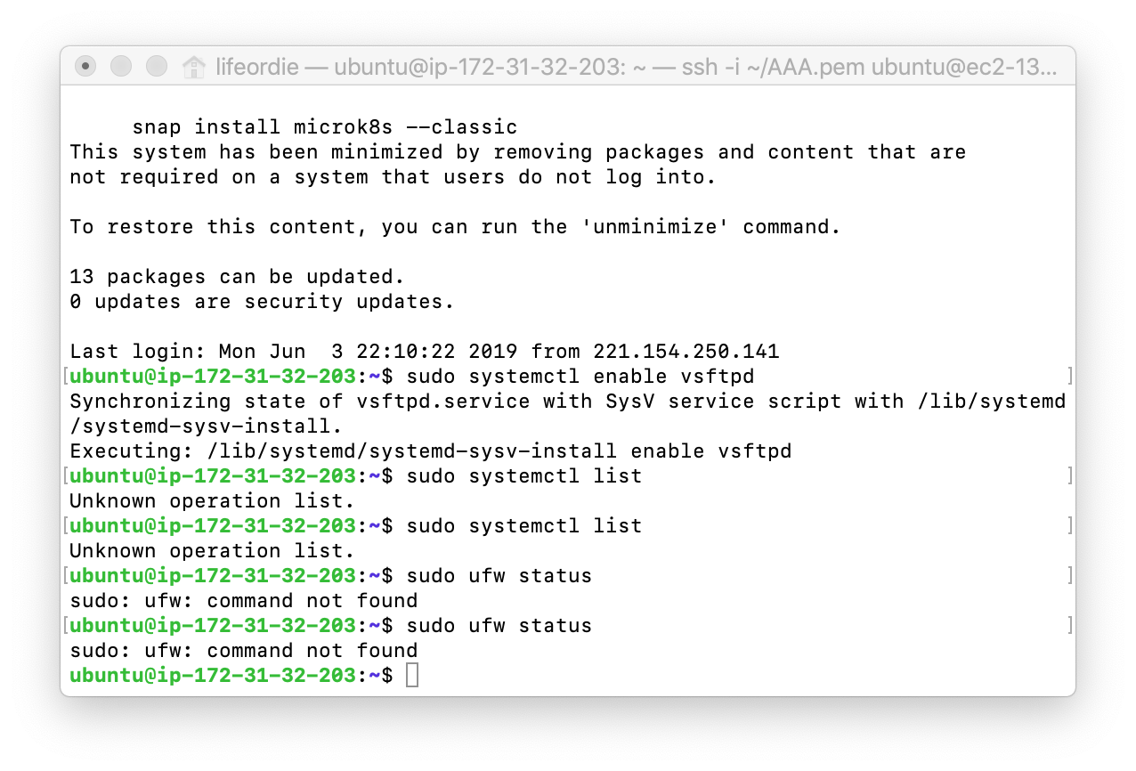 고객의 요청으로 aws, EC2 node.js 웹 서버를 구축하게 되었습니다. 그래서 파일을 업로드할 ftp 서버를 하게되어, ftp 설치를 하는 김에 같이 하게 되었습니다.