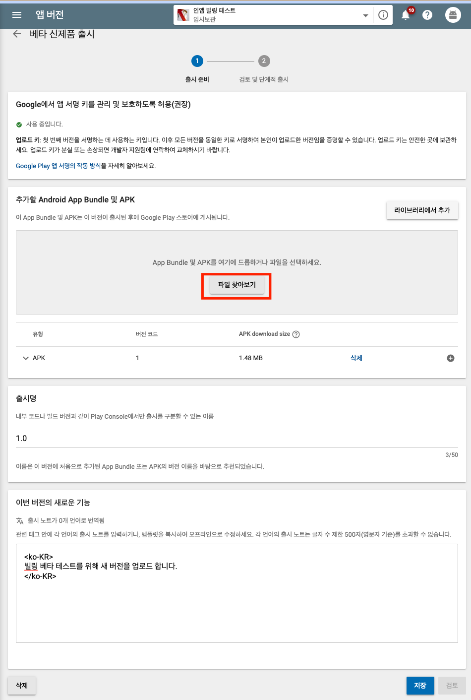베타 버전으로 앱 등록하기 : https://nicgoon.tistory.com/199