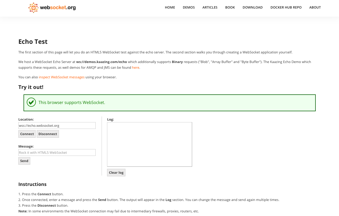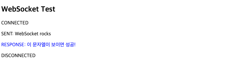 그리고, websocketclient.html 파일을 새로고침 하면, 아래 처럼, 접속이 완료 되고 메시지를 보내는 것 까지 확인이 됩니다.