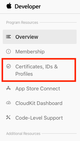 개발자 사이트로 이동해 Certificates, Identifiers & Profile 페이지로 가 Keys All 메뉴를 선택합니다. 해당 페이지가 나오면, + 버튼을 눌러 APN 키 만들기를 시작합니다.