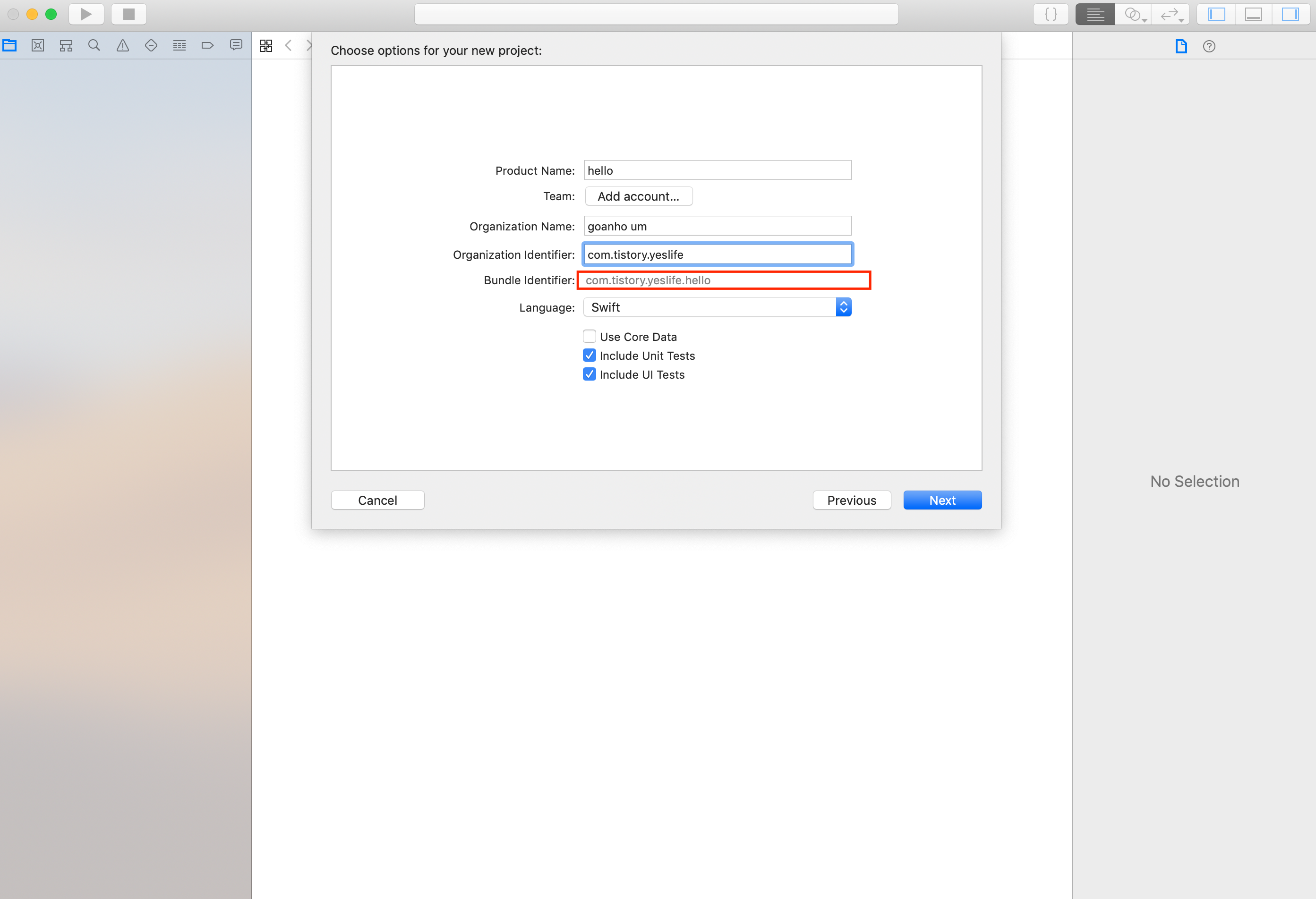 먼저 싱글뷰 타입으로 프로젝트를 생성하기 바랍니다.