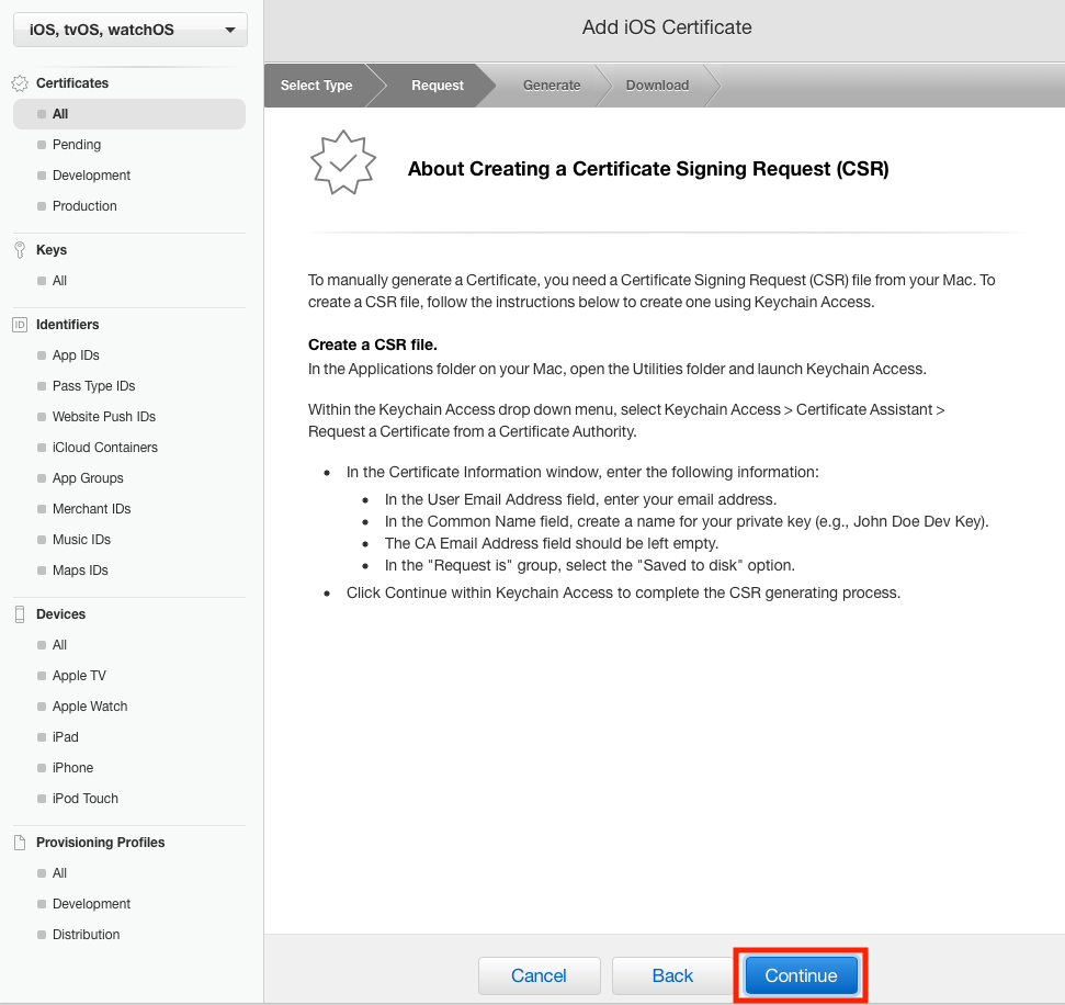 프로젝트를 생성하기전 푸쉬 관련 인증서 및 프로비저닝 파일을 모두 만들어 두시기 바랍니다.