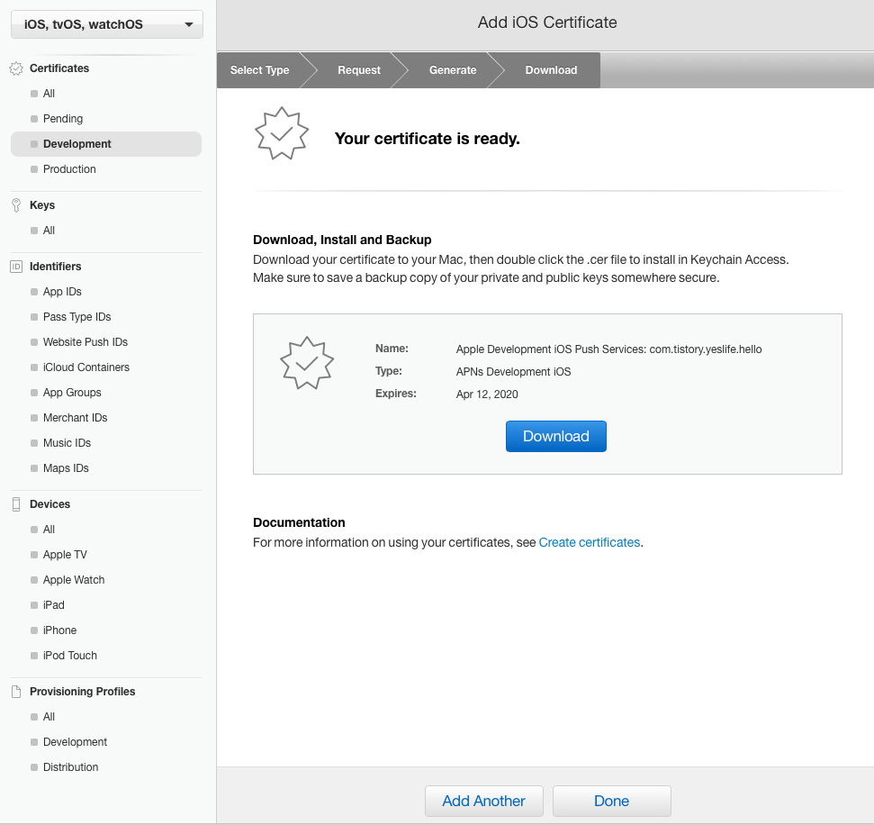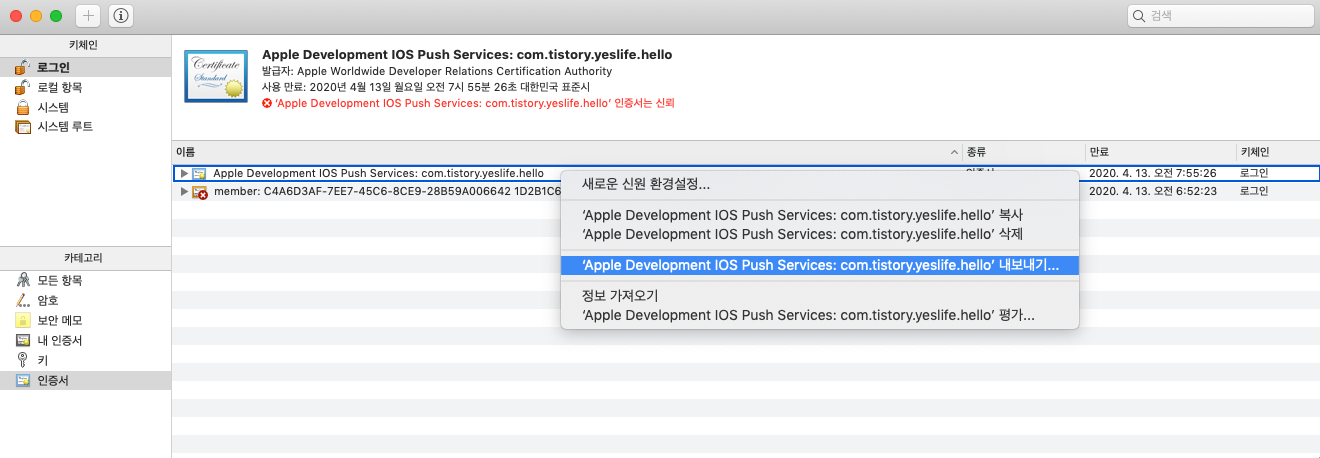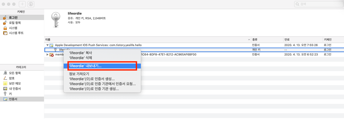 프로비저닝 프로파일 만들기 (푸쉬 인증서 설명도 같이 있음) : https://nicgoon.tistory.com/202 .