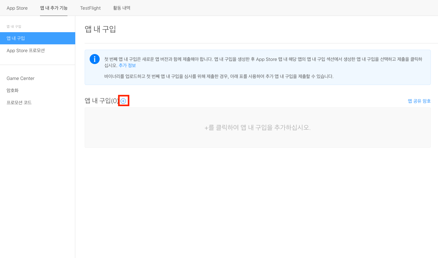 아래의 프로젝트가 선택된 화면 상태에서, iOS 추가 버튼을 눌러 해당 프로젝트에 iOS앱을 추가하도록 합니다.