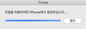 다음을 누르면, 앱이 통신을 했는지 확인하려고 계속 대기 화면이 호출됩니다. 기기와 맥북을 연결후 한 번 실행해 줍니다.