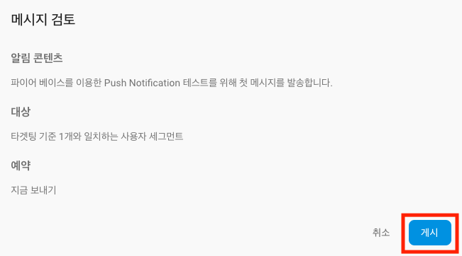 메시지 검토 다이얼로그가 뜨면, 게시버튼을 눌러 메시지를 보냅니다.