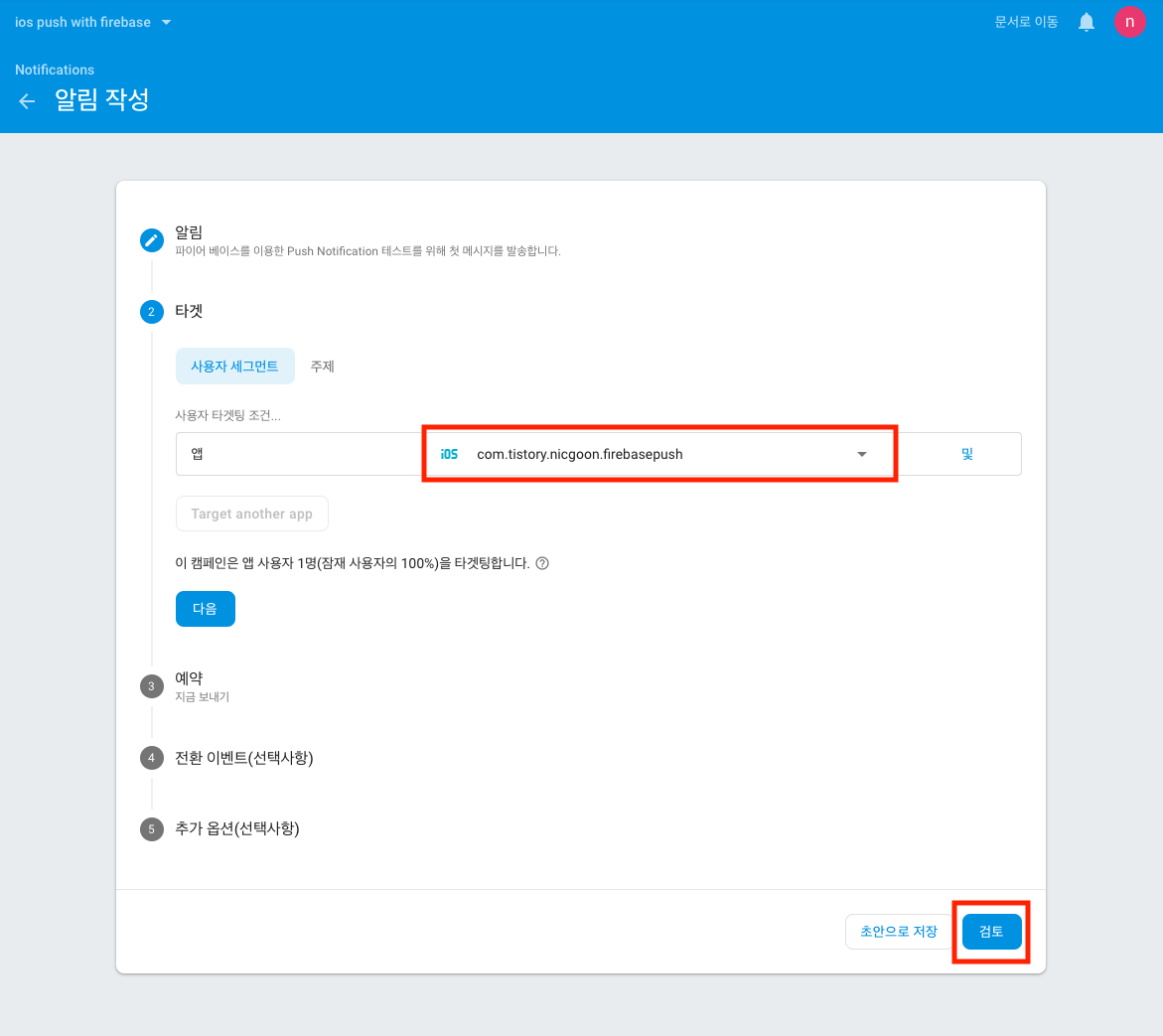 타겟 항목이 뜨면 iOS 앱을 선택하고, 검토를 눌러 줍니다.