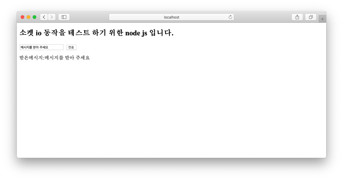 브라우저에서 적당한 메시지를 입력하고, 전송 버튼을 눌러 봅니다.