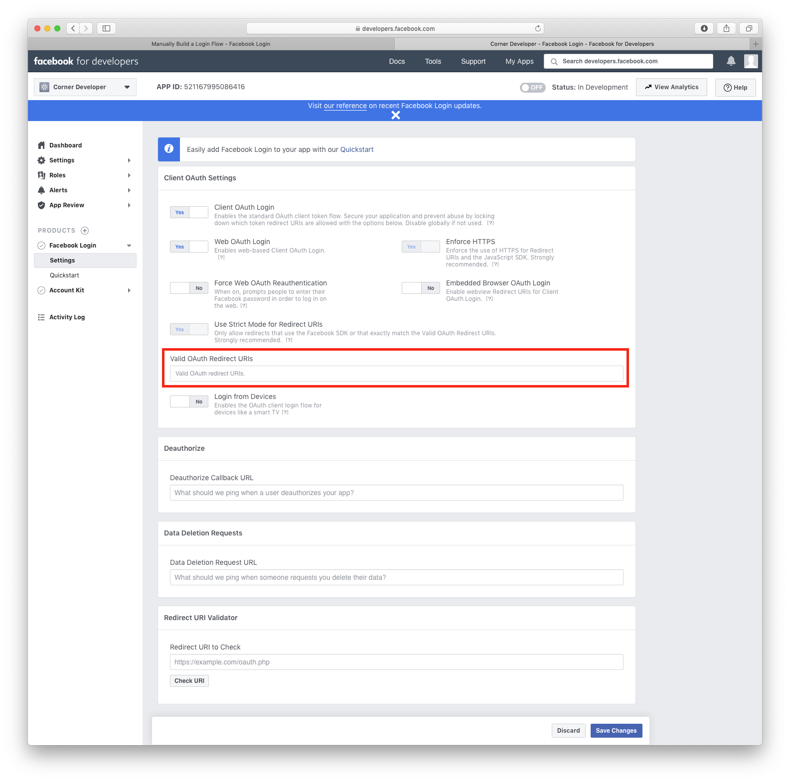// 페이스북 로그인을 위한 주소를 만들어 줍니다.
